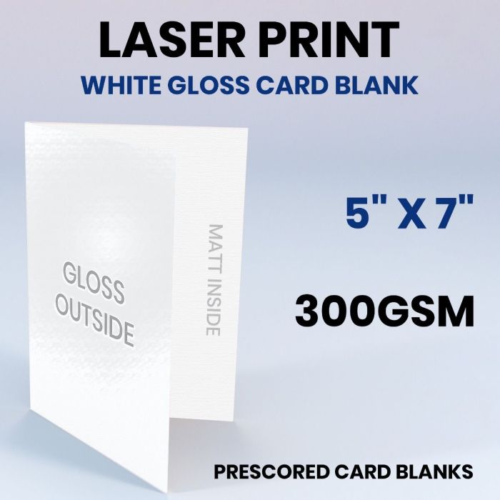 5" x 7" White Gloss Card Blank 300GSM, Laser Print, 1 Card Blanks