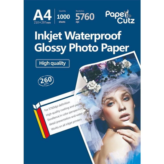 Waterproof Vivid colour Sharp image Instant dry 5760dpi. Do you want to print your photos with stunning quality and durability? Then you need the Photo Paper Inkjet Glossy Waterproof from Papercutz. This photo paper is made from glossy paper that has a waterproof coating and a bright white colour. It is ideal for printing high-resolution images, up to 5760dpi, with vivid colours and sharp details. It is also compatible with most inkjet printers and dries quickly. The Photo Paper Inkjet Glossy Waterproof is available in packs with instructions, and comes with a 30-day money-back guarantee. Order now and enjoy speedy delivery on every purchase. Don't wait any longer to get your hands on the Photo Paper Inkjet Glossy Waterproof from Papercutz. Order yours today and enjoy your photos for years to come.