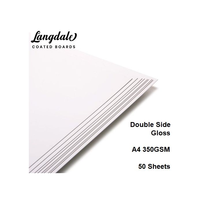 A4 Super Gloss White Gloss Coated 2 Card 350GSM 50 Sheets