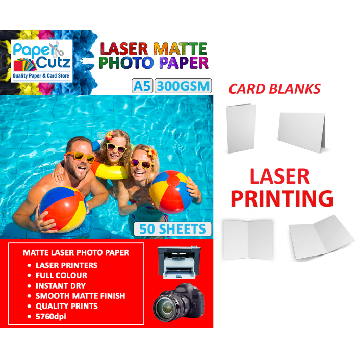 Description / A5 Folds A6 Card Blanks for Laser Printing, Matte 300GSM - 50 Sheets
